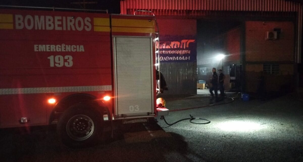 Bombeiros combatem incêndio em metalúrgica de Forquilhinha