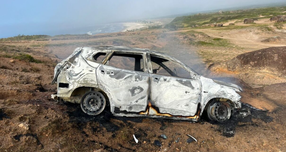 Corpo carbonizado é encontrado dentro de carro após incêndio na Praia do Gi, em Laguna; De acordo com o Corpo de Bombeiros Militar, a ocorrência foi atendida na manhã desta segunda-feira
