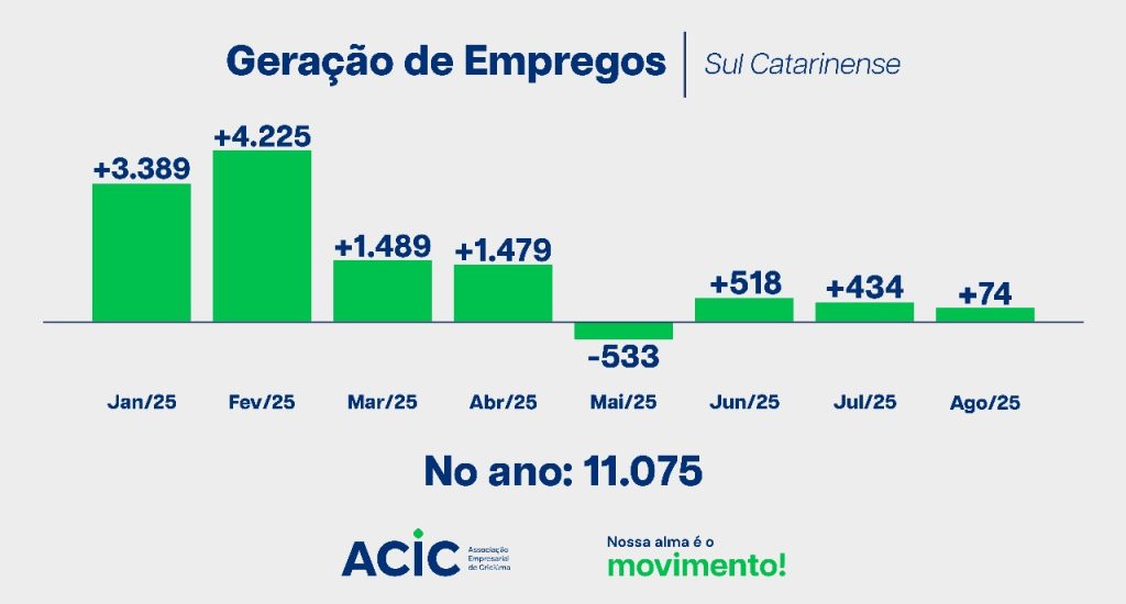O Sul de Santa Catarina encerrou o mês de agosto com saldo de 74 empregos formais acrescentados, segundo os dados do Cadastro Geral de Empregados e Desempregados (Novo Caged), divulgado pelo Ministério do Trabalho e Emprego. Apesar do resultado positivo, o número reforça a tendência de desaceleração na geração de vagas observada ao longo de… Ler mais